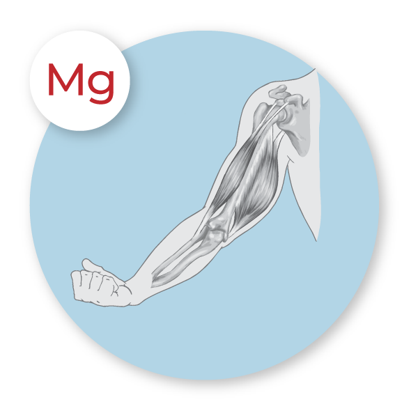 Pravilno delovanje mišic in ustvarjanje energije spadata med najpomembnejši funkciji magnezija. Brez zadostne količine magnezija v telesu se mišica ne more ustrezno sprostiti, to pa utegne povzročiti krče. Ljudje, ki se ukvarjajo z vzdržljivostnimi športi (maratonci, kolesarji, triatlonci), utegnejo bolj tvegati glede pomanjkanja magnezija.